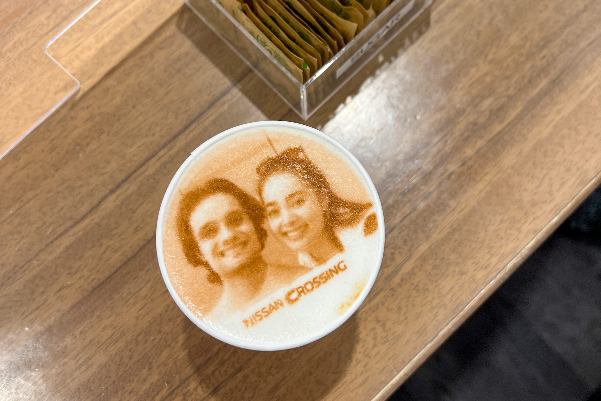 A folyamat így zajlik: a vendég rendel, kiválaszt egy autós dizájnt — vagy megmutat egy saját képet (például telefonról vagy azonnali fotót csinálnak rólad) — a személyzet a speciális nyomtatóval rányomtatja a fotót a latte tetejére, ehető tinta segítségével. ☕