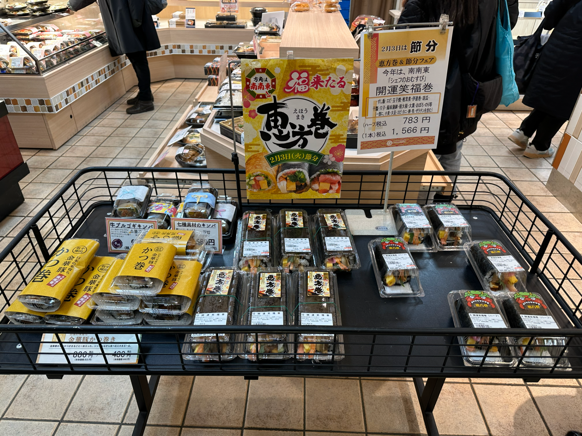 Ezenfelül én még sosem nem ettem ehomaki-t(えほまき), ami ennek a szokásnak a fő étele, így elmentünk a közeli szupermarketbe. 🍣